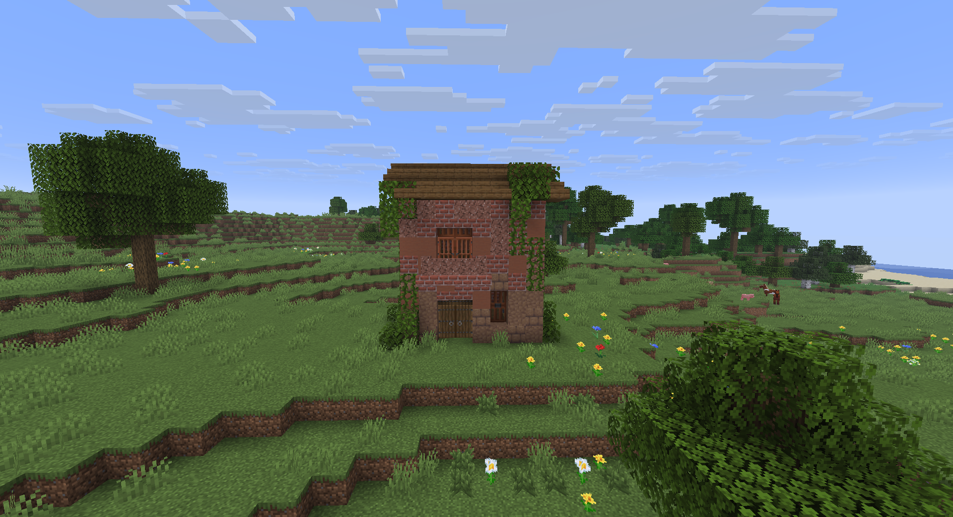 Abandoned City Buildings Updated is suitable for those who want to add a bit of an atmosphere of abandonment and survival among ruins to Minecraft. The mod introduces four post-apocalyptic buildings into world generation: a yellow house, a red house, a brick building, and a red mansion. These structures do not look like mere decorations — you can live in them, use them as a temporary base, or explore them for loot.
