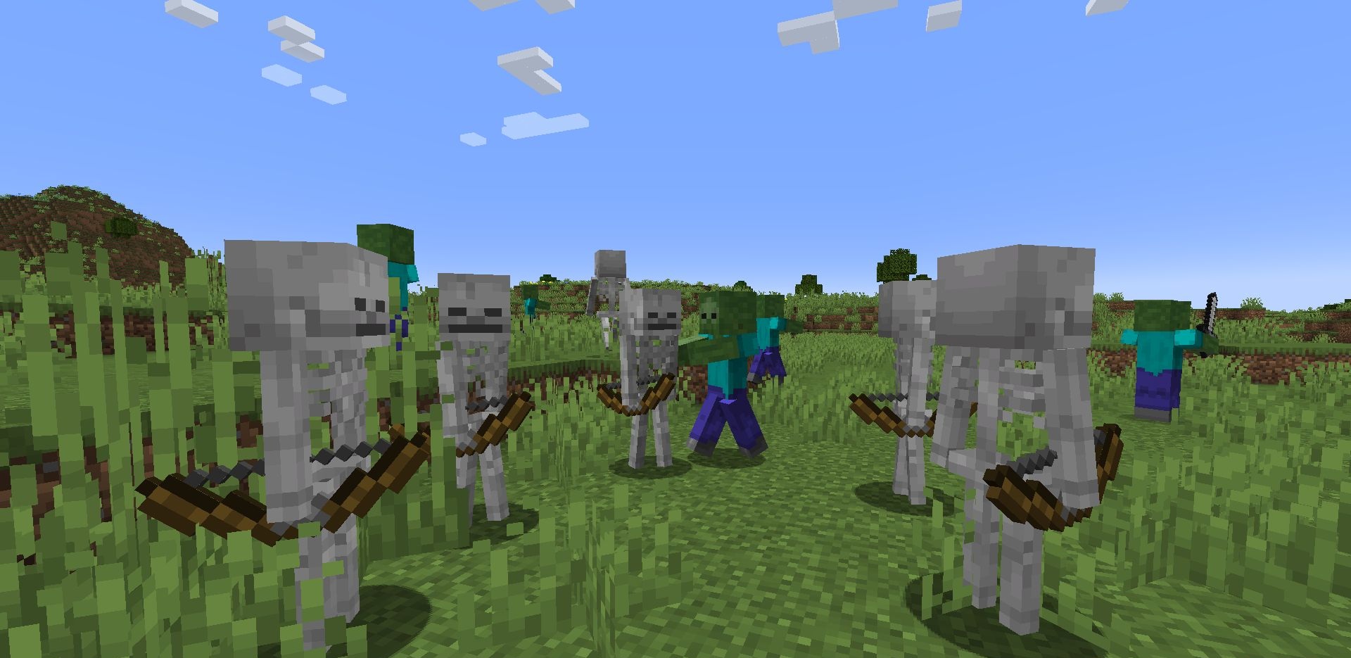 Daylight Mobs Reborn changes the nature of survival, because it removes one of the main daytime allowances. When zombies and skeletons do not burn in the sun, daytime stops being an automatic break, and if daytime spawning is also enabled, the pressure from enemies is felt almost constantly. A mod like this does not simply add difficulty — it changes the rhythm of the entire game.