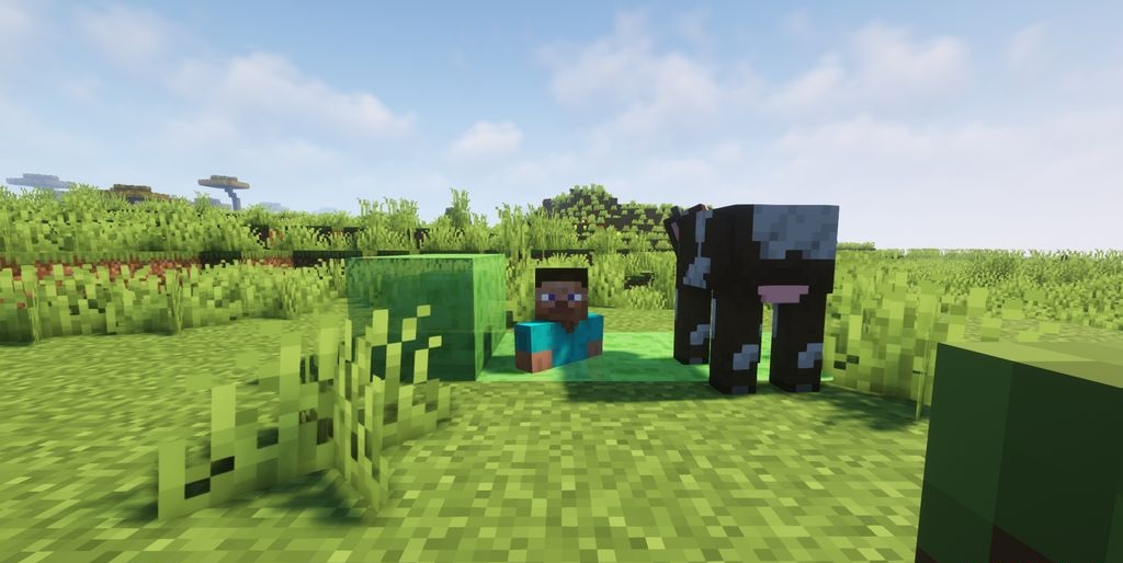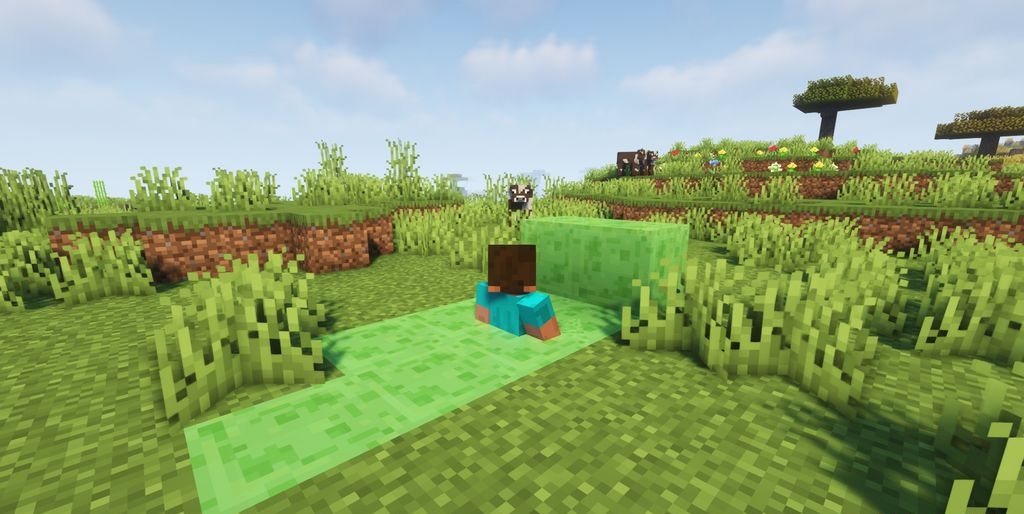 Slime blocks are usually associated with jumping, bounce, and various Redstone mechanics, but Fall Through Slime looks at them in a completely different way. This mod changes the usual behavior of the block and makes it almost like a trap: if you stand on slime for too long without moving, the character begins to slowly sink through it. It is exactly this simple idea that creates an unusual feeling of instability.