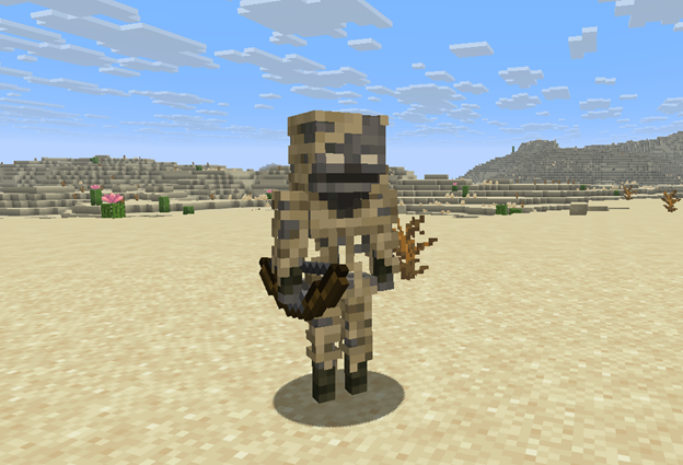 Dune Walker — a new hostile mob in the update, representing a special desert variety of skeleton that spawns only on the surface of deserts at zero light level, partially replacing regular skeletons, while unlike them it does not spawn in caves and is completely immune to sunlight, making it a dangerous opponent even during the day. With a standard health pool of 16 points, the dune walker attacks with arrows of weakness, significantly reducing the player's combat capability, and its increased reload time, like that of the bog skeleton, is compensated by a high tactical threat due to the applied effects.