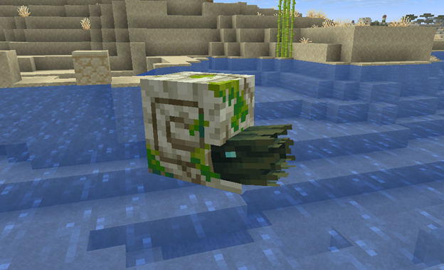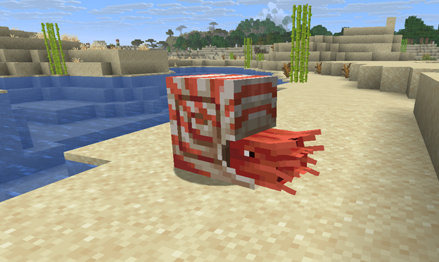 Zombie Nautilus — a variety of nautilus in undead form that appears in all ocean biomes already mounted by a drowned armed with a trident, and in warm oceans it has a separate coral variation. By itself it behaves almost the same as a regular nautilus, however it cannot be bred and becomes hostile only if an aggressive mob is riding it. Unlike the living nautilus, it does not suffocate on land, but instead burns in sunlight, from which it can be protected by equipped nautilus armor, and upon death it drops rotten flesh.