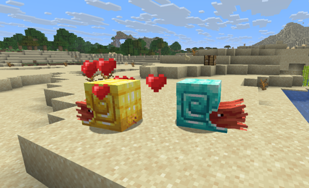 Nautilus — a neutral aquatic mob that appears in all ocean biomes and has a health pool of 15 points. In its normal state it is non-aggressive, but when provoked it attacks with a swift dash; it hunts nearby pufferfish in the same manner. On land, the nautilus begins to suffocate and take damage, which makes it a strictly aquatic creature, but during riding it applies a unique effect called “Nautilus Breath” to the rider, allowing them to stay underwater longer. It can be bred using pufferfish or a bucket of pufferfish, and after taming it can be equipped with a saddle for movement; when the jump key is pressed, it performs a sharp dash like a camel. However, after taming it receives a movement radius limit — 16 blocks with a saddle and 32 without it, and upon death it has a 5% chance to drop a nautilus shell.