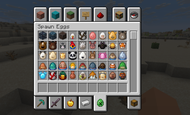 · Spawn eggs in Creative mode are conveniently sorted by categories.