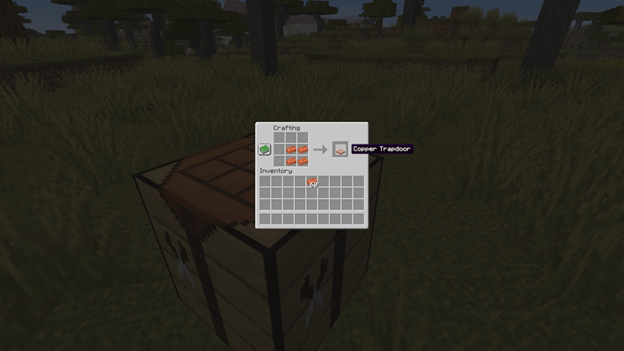· Effects and crafting. A copper trapdoor was added, crafted from 4 ingots in a square shape. Test blocks now transfer error notifications between world loads. Dyes have updated item icons. Now they are all displayed on wooden tiles as backgrounds.