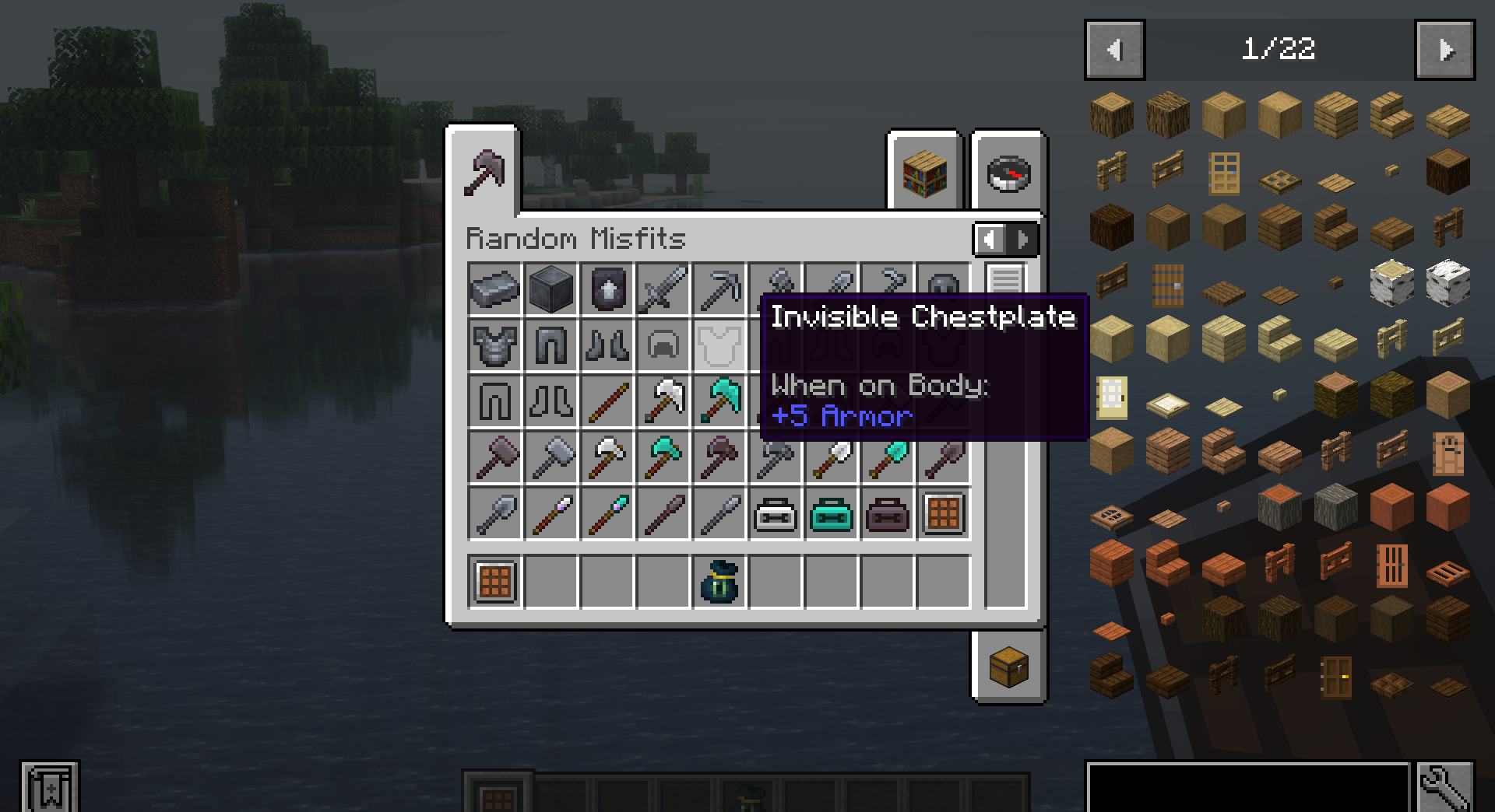Players looking for variety and powerful tools will enjoy Random Misfits mod. It combines an entire set of features, making the game richer. The main highlight is a new material, Zurite, an analogue of Netherite but with special properties: fire resistance, knockback resistance, and self-repair. You can craft durable armor, invisible gear, and powerful multitools that combine the functions of a pickaxe, axe, shovel, and hoe.
