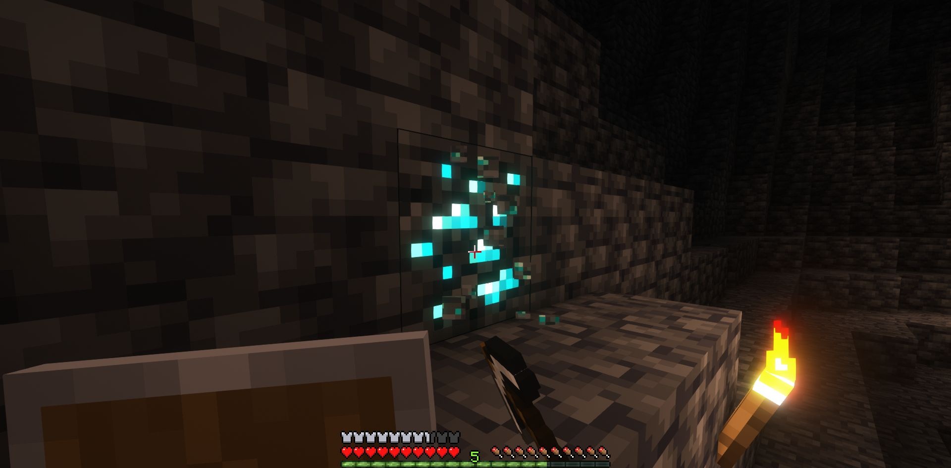 Horizontal and vertical mining rarely feel truly dangerous, but with Harder Branch Mining, that changes. The deeper a player goes underground, the stronger the effects of fatigue become: hunger depletes faster, and mining speed gradually decreases. This forces players to plan their descents differently, bring more food, and carefully consider their routes.