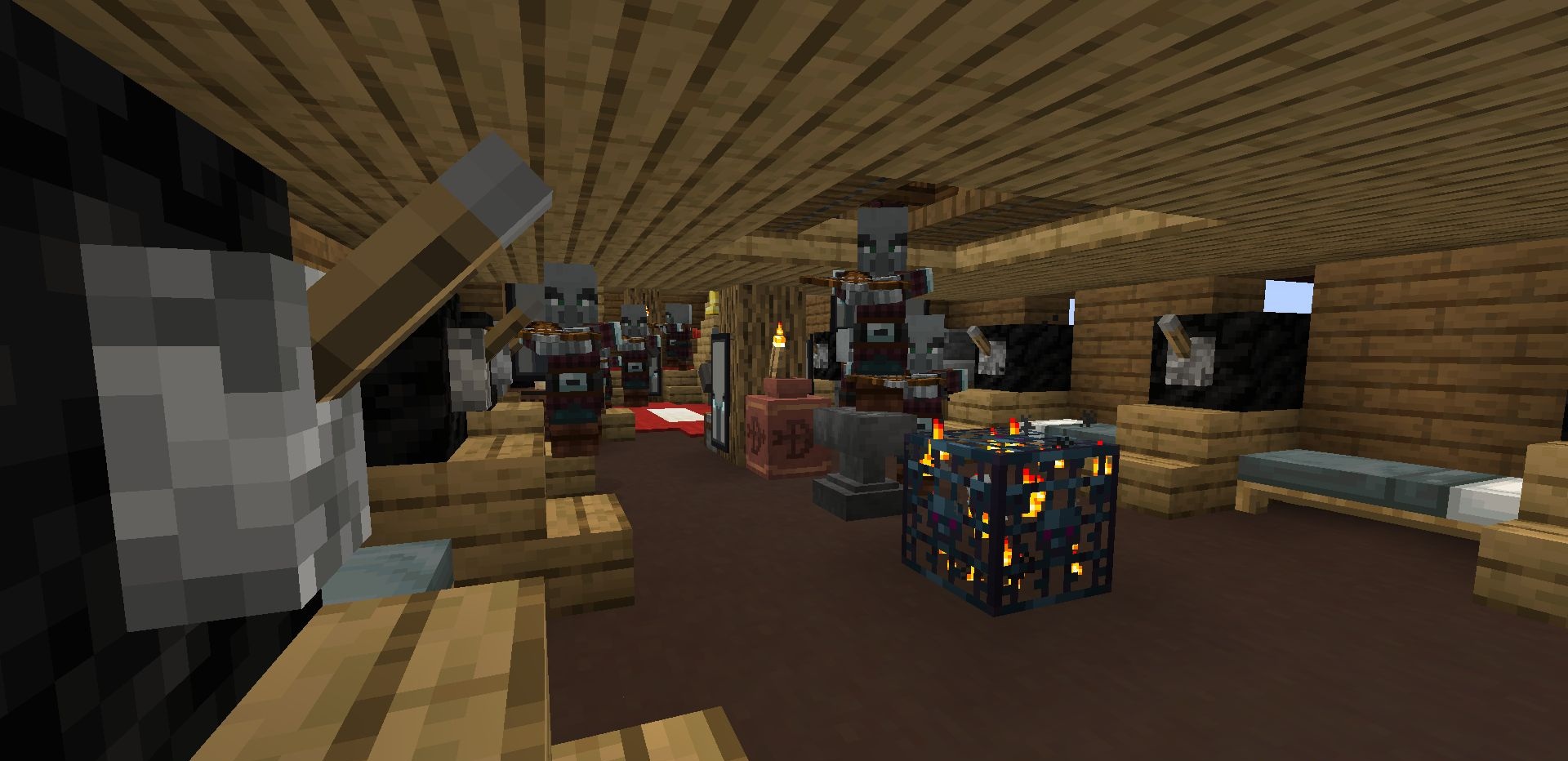 Ocean expanses become much more dangerous when Illager Warship appears in the world — a giant illager warship that generates in ocean biomes and turns ordinary sailing into a real challenge. This is not just a decorative structure but a well-guarded fortress on water, filled with various types of illagers ready to attack any uninvited guest.