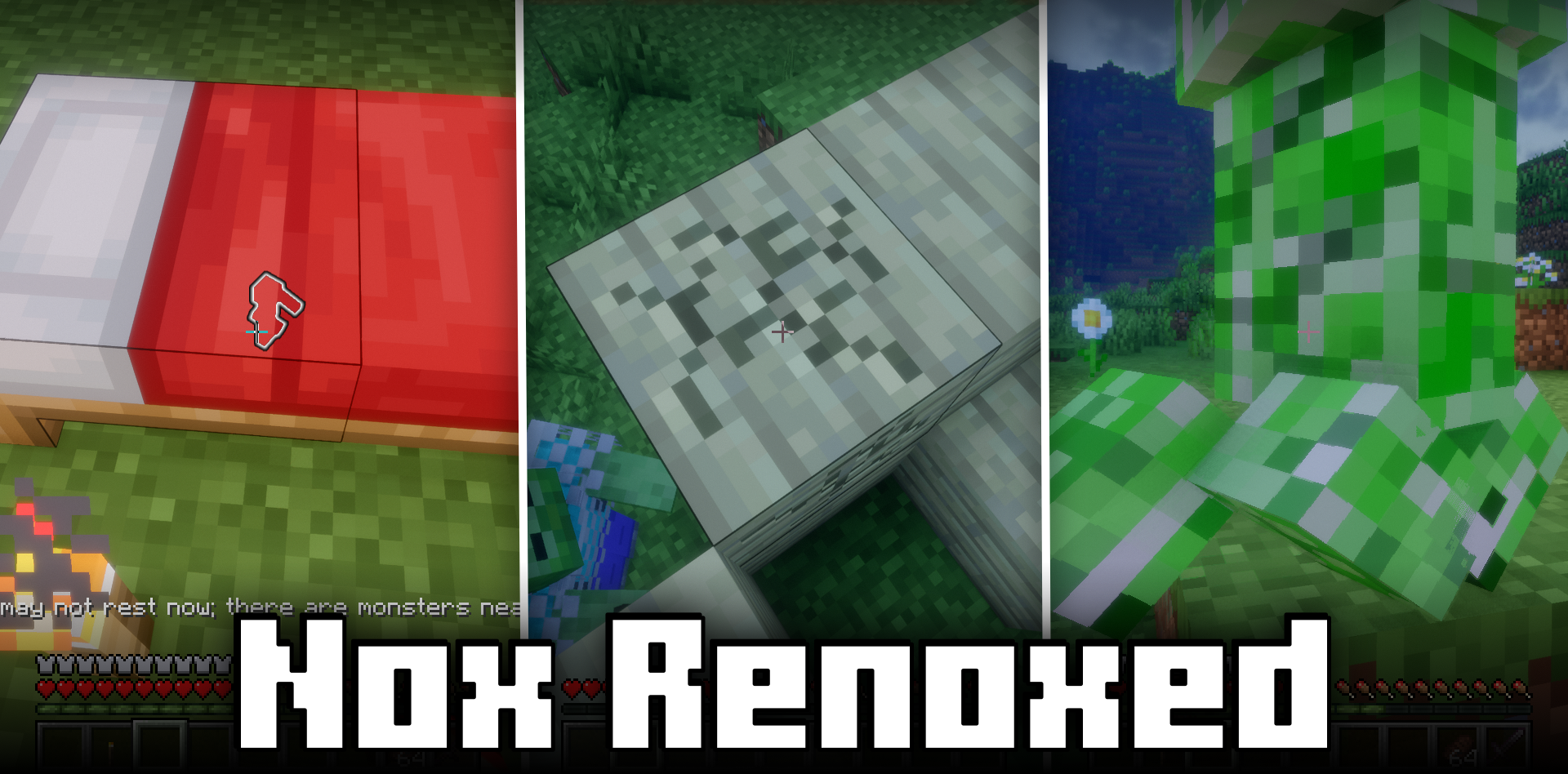 For experienced players, the standard difficulty sometimes stops being a serious challenge. Nox: Renoxed mod is designed specifically for those who want to turn nights into a real struggle for survival. It makes hostile mobs smarter, stronger, and much more dangerous. One of the most noticeable changes is related to sleep. Now the player will not be able to calmly go to bed if monsters are nearby.