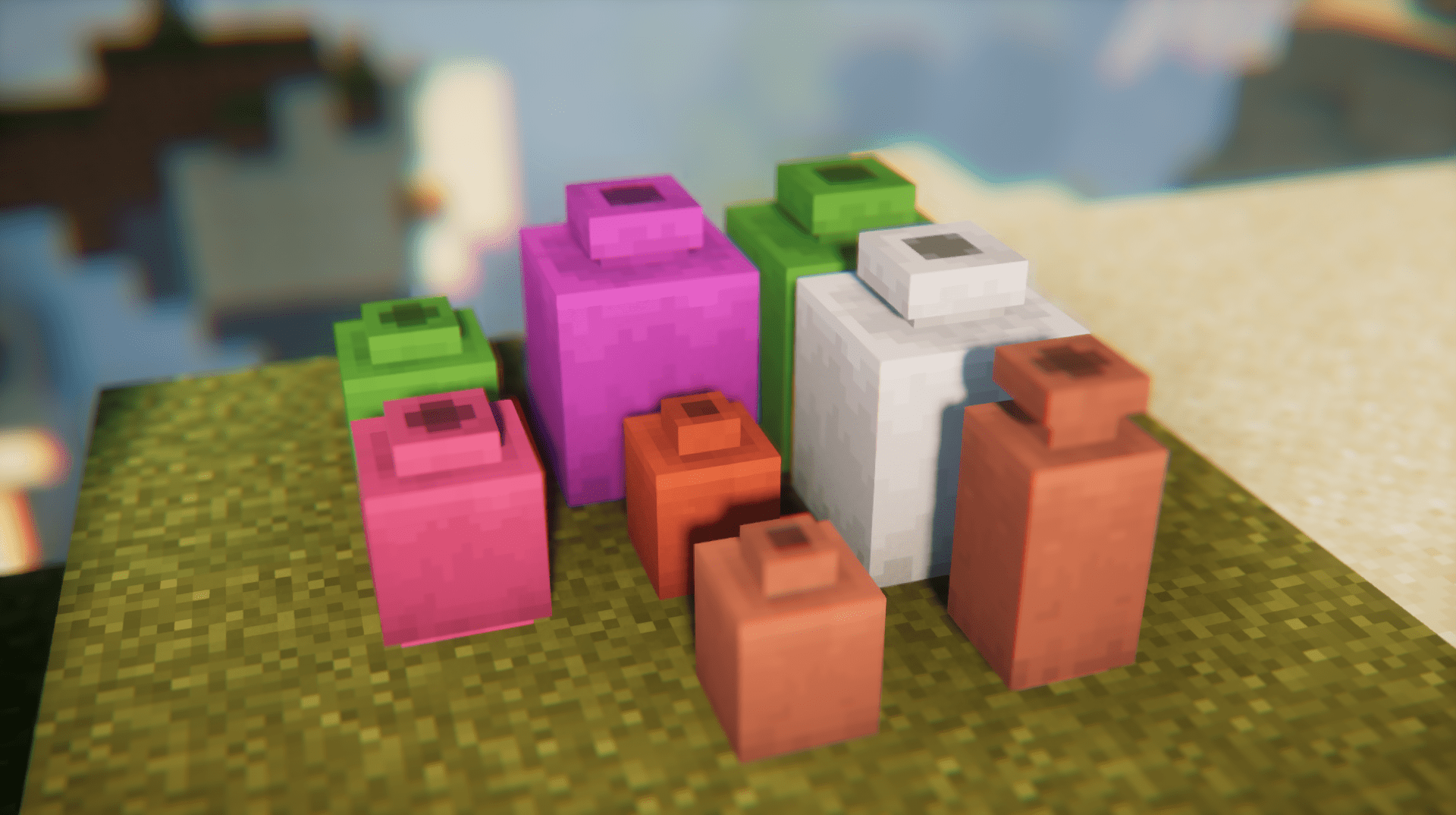 Fans of detail and interior design should definitely pay attention to Pottery. The mod adds 85 decorative pots — five shapes and seventeen color variants, including unpainted models. Any dye can be used during crafting, and a placed pot can be easily recolored simply by clicking on it with the desired dye.