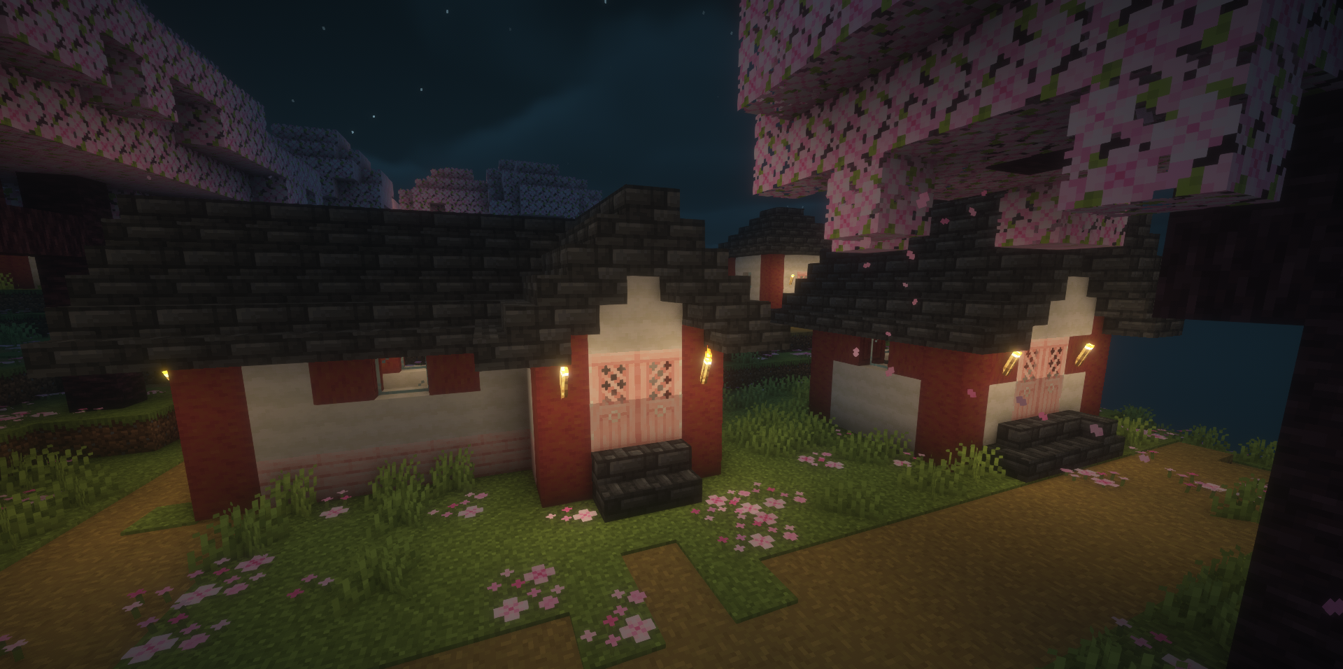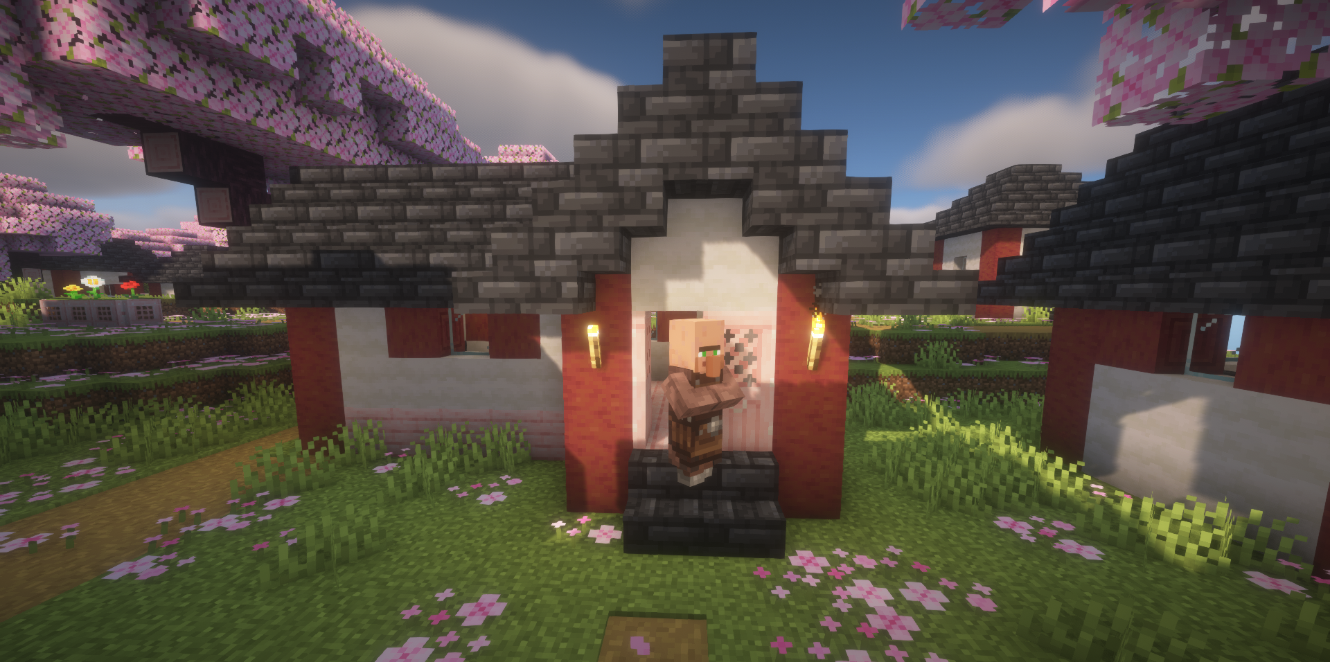 Cherry Village adds to the cherry grove biome exactly what it was missing so much — a full village that looks fitting and very atmospheric among the pink trees. Because of this, one of the most beautiful biomes becomes not just a decorative location for walks, but a place where you really can encounter life, settle there yourself, or use it as the foundation for a beautiful build.