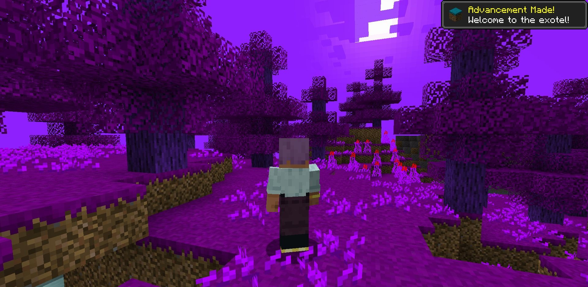 Exotelcraft feels not like a small addition, but like a large content pack that seriously expands familiar Minecraft. Its main idea is built around a new dimension, but it does not stop there: along with it come hundreds of blocks, new materials, biomes, structures, and entities, making the world feel noticeably richer.