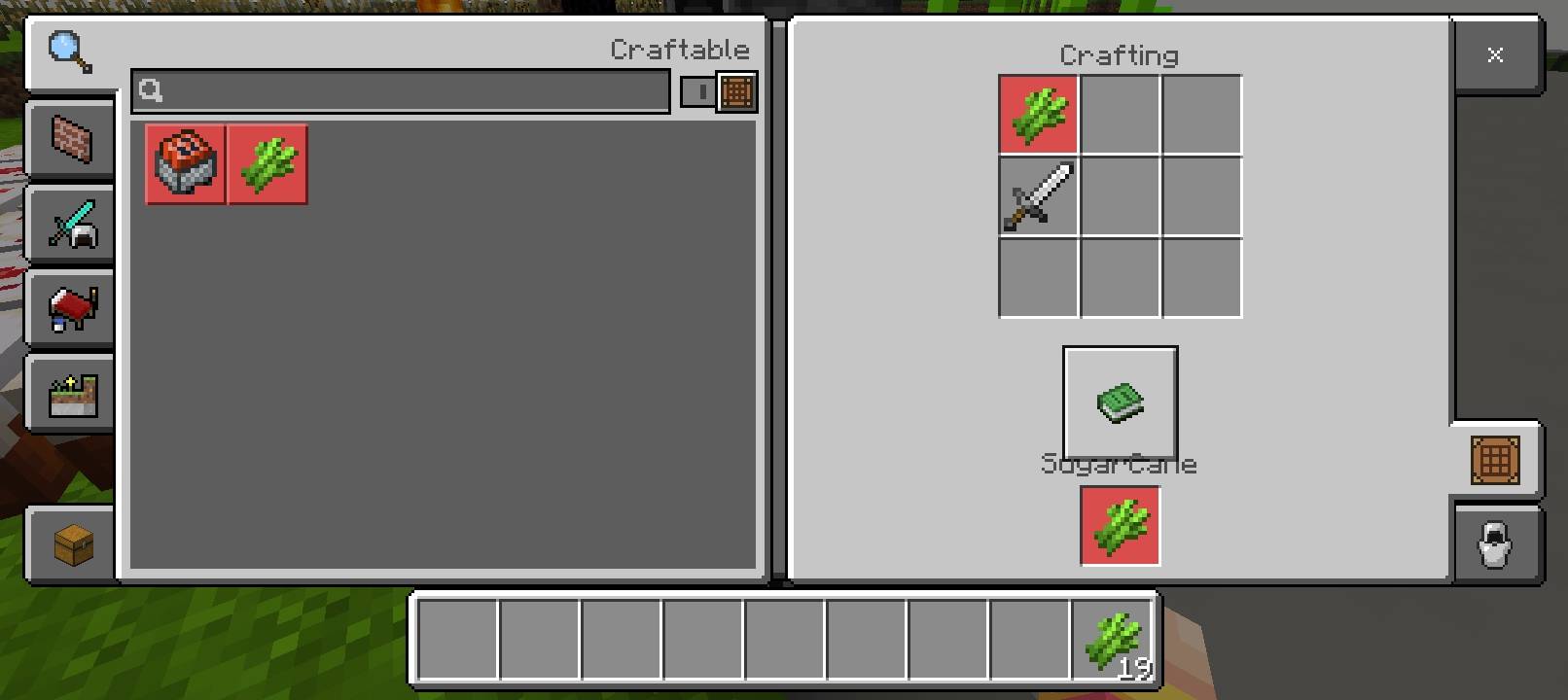 Usually, sugar cane is used only for crafting paper or sugar, but Eatable SugarCane mod offers a much more practical use for this plant. Now it can be turned into a proper food item and used to quickly restore hunger during survival. To create the edible version, you need to combine regular sugar cane and an iron sword on a crafting table.