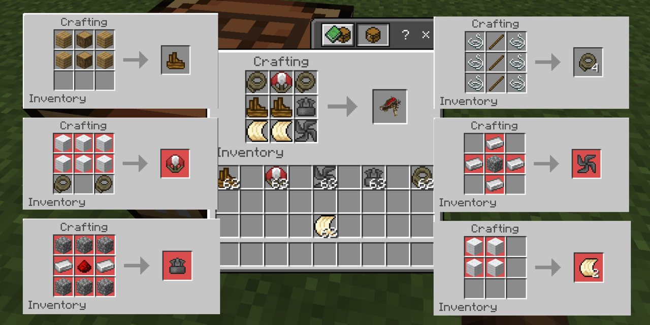 You can conquer the skies with FlyerWork Vanilla Aircraft and Plane. The game introduces 10 types of aircraft — from a simple wooden glider for the early stages of progression to powerful fighter jets in the late game. Crafting these vehicles requires collecting blueprints across different dimensions, encouraging world exploration. The mod includes a weapon system: aircraft can be equipped with automatic cannons, rockets, and bombs.