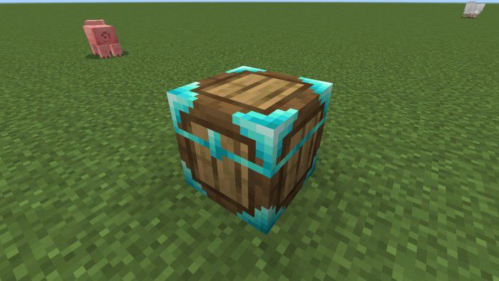 Keys & Crates mod adds special crates that generate naturally all across the Minecraft PE map. Inside them there can be random loot — from simple resources to more valuable items. Wooden crates are considered the most common. They are found most often and are opened quite simply: the player only needs to break the block with an axe, after which the loot drops outside.