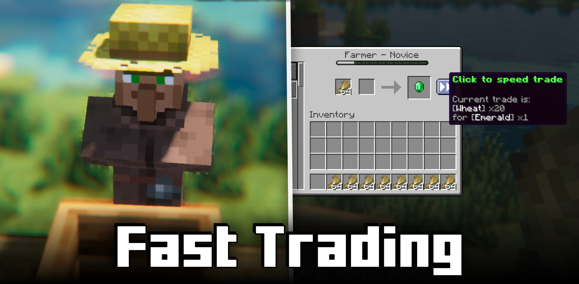 A trading hall with villagers is one of the most profitable systems in Minecraft, but it is also the one that often turns into a routine of identical clicks. Fast Trading removes this irritating link by allowing you to carry out the maximum number of trades for the selected deal with literally one click. Instead of repeating the same action again and again, the player immediately gets the result until the trade reaches its limit.