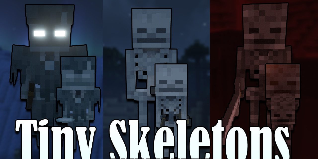 Sometimes even familiar mobs can surprise you again if you change their size and behavior. Tiny Skeletons adds miniature versions of regular skeletons, strays, and wither skeletons to the game, turning familiar encounters into something more unusual. Despite their small size, these creatures do not become harmless. On the contrary, they move quickly, attack accurately, and are capable of catching even an experienced player off guard.