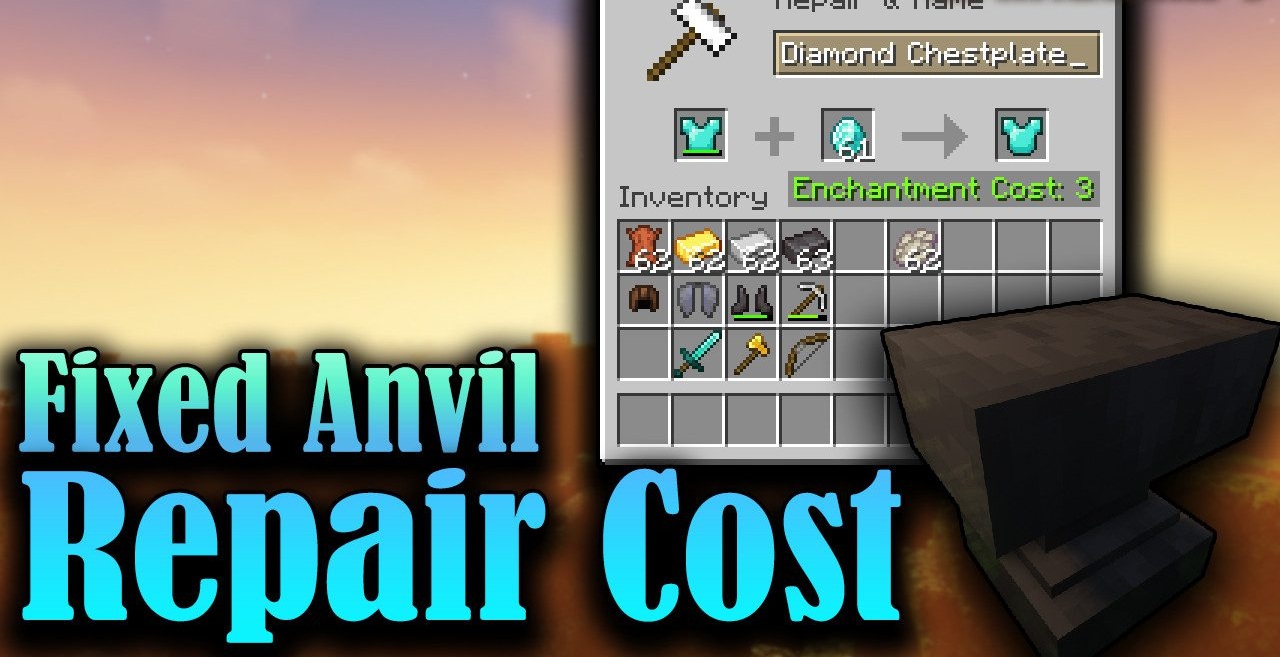 Fixed Anvil Repair Cost changes the usual rules of how anvils work, making their use fairer and more convenient. In the standard game, the repair cost increases with each use, eventually forcing players to throw away their favorite tools. This mod removes that limitation: the repair cost remains constant, and the player can set it themselves.