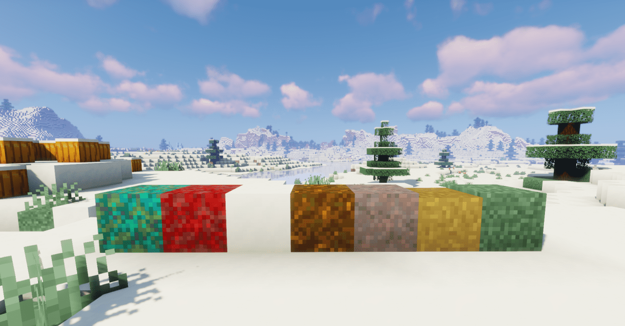 Smooth transitions between the top and side faces create the effect of continuous coverage, which makes fields, forests, and biomes with unusual soil more realistic. This is especially useful for players building in open landscapes, where it is important that the ground looks alive and organic, not consisting of sharp visual borders.