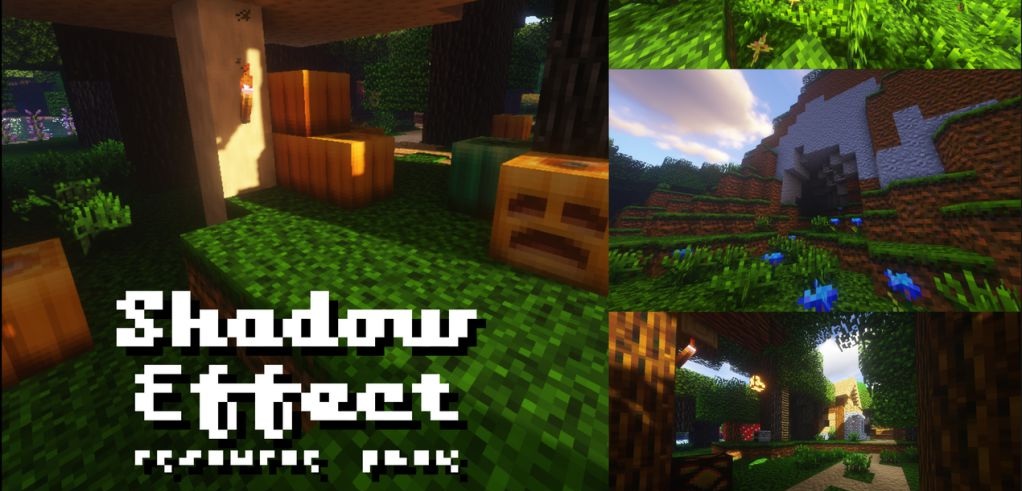 Shadow Effect resource pack creates the illusion of photorealism at a resolution of just 16x — thanks to filters, shadows, and a reworked pixel structure, it looks unusually rich. Textures gain volumetric silhouettes, and the colors receive an adjusted RGB curve, which results in deeper shades.